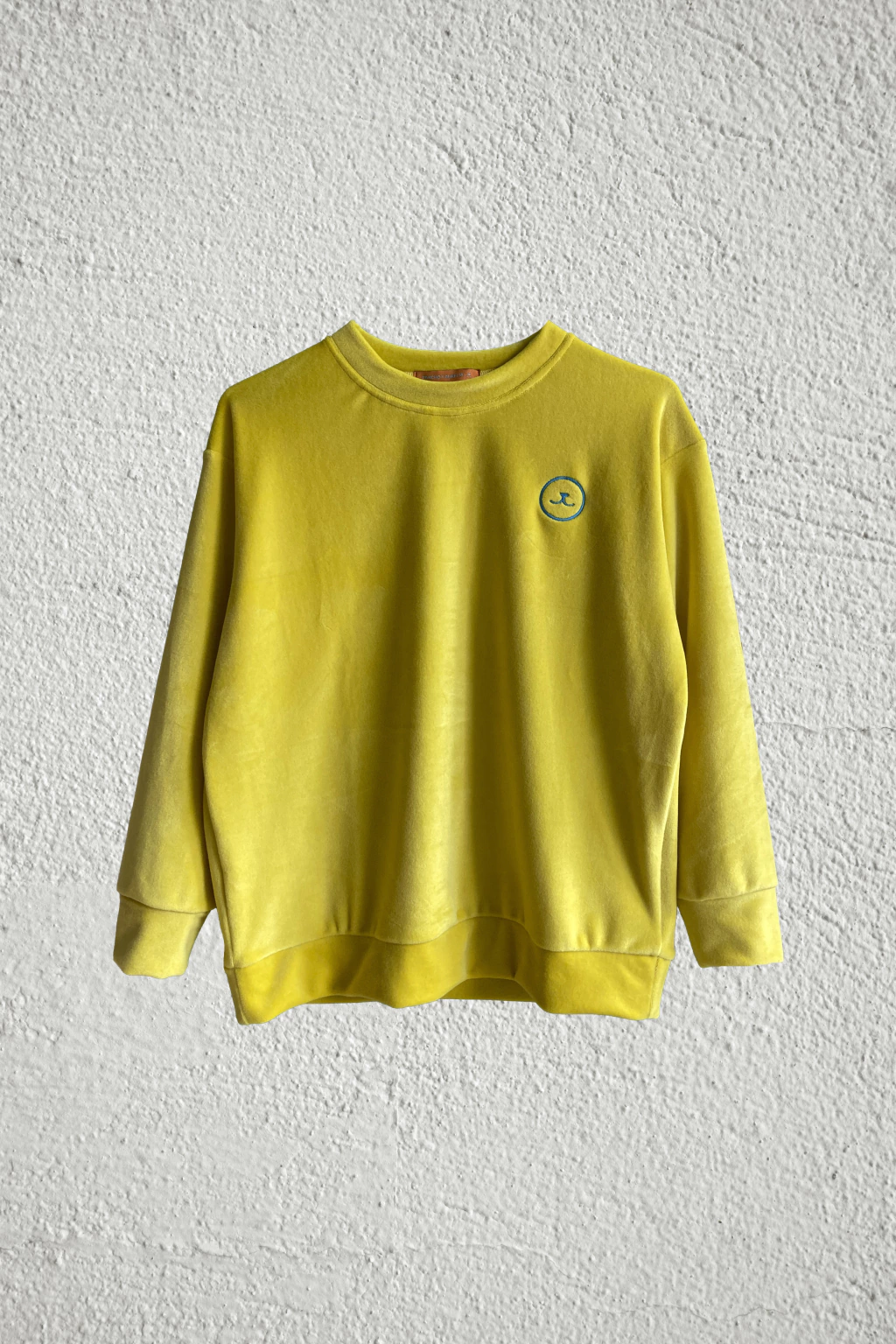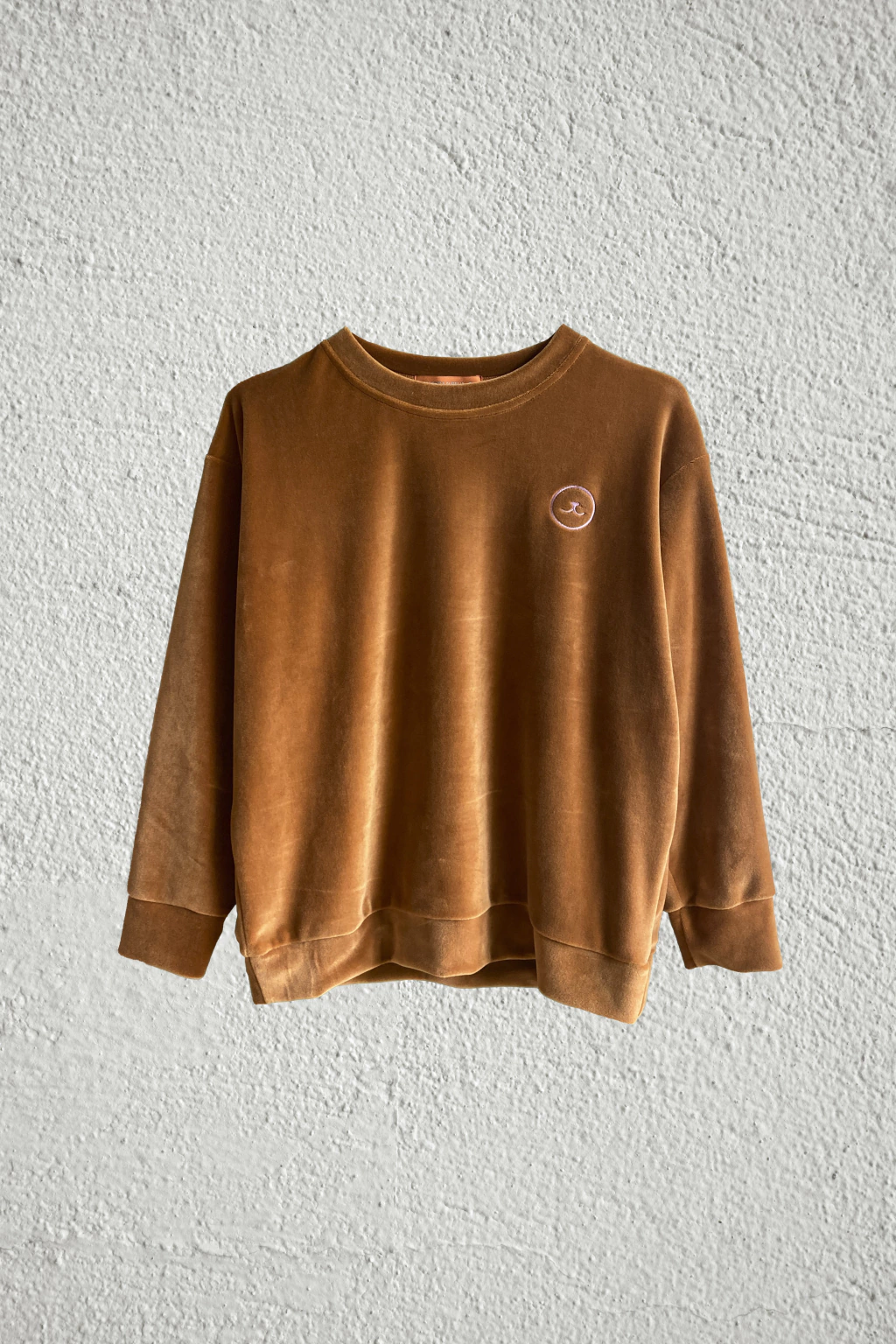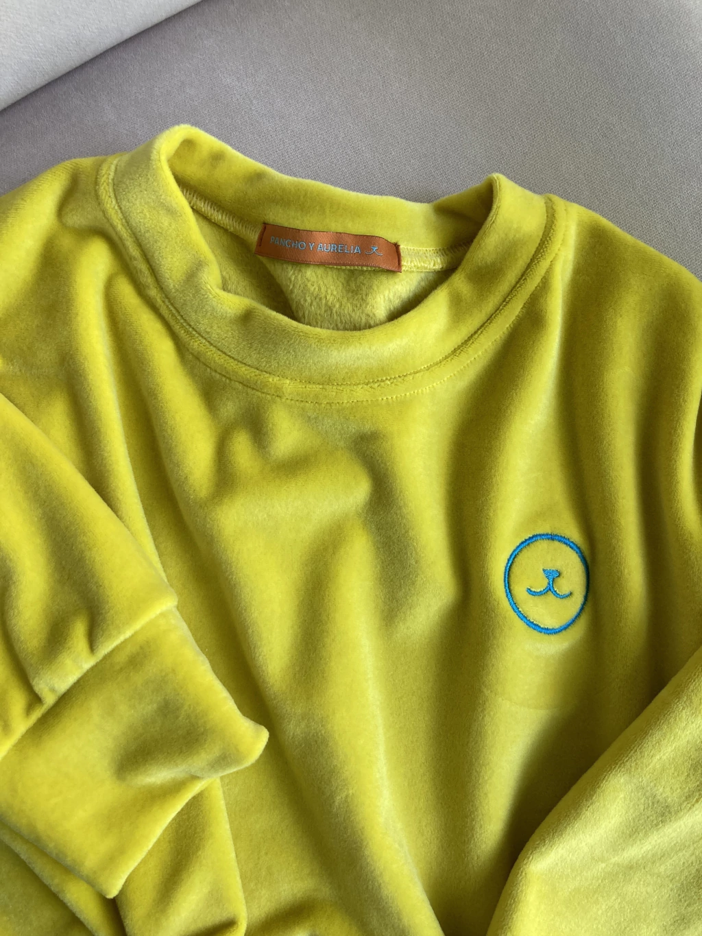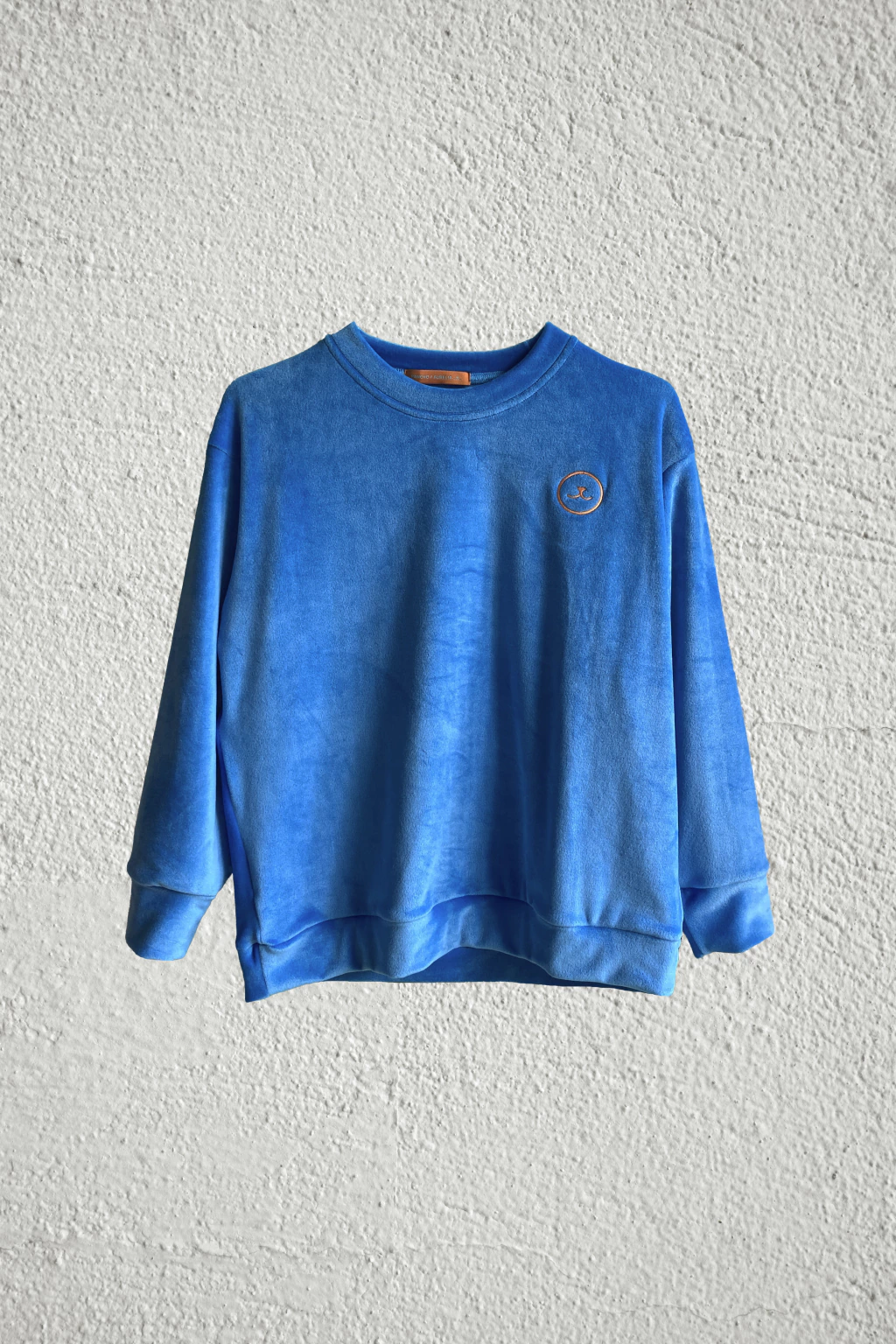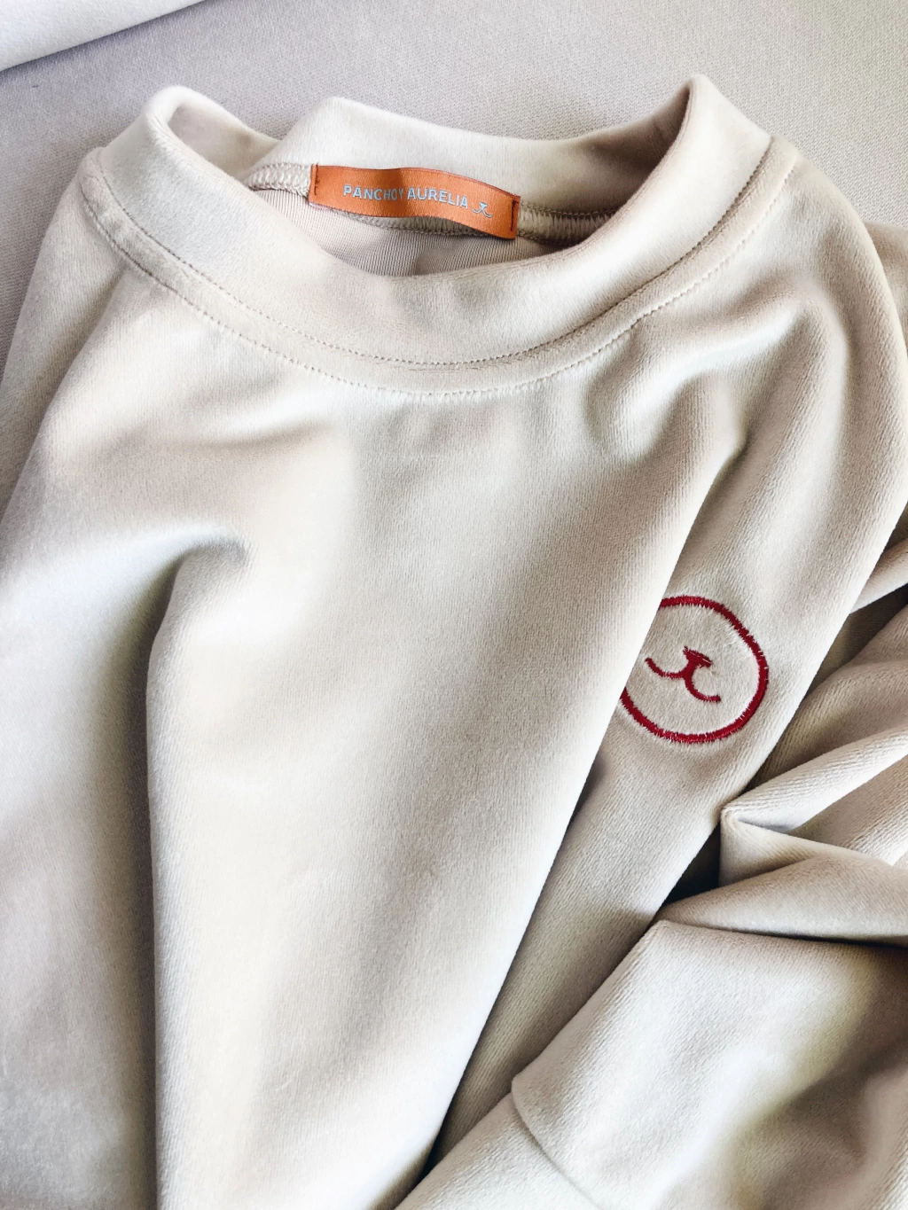 Buzo confeccionado en plush acabado velvet, con logo bordado a contratono.