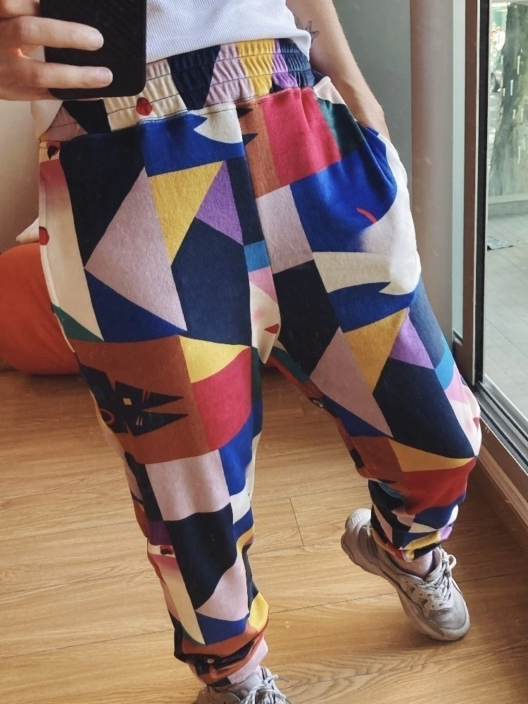 Tiro alto, elástico en cintura y puños, bolsillos laterales.