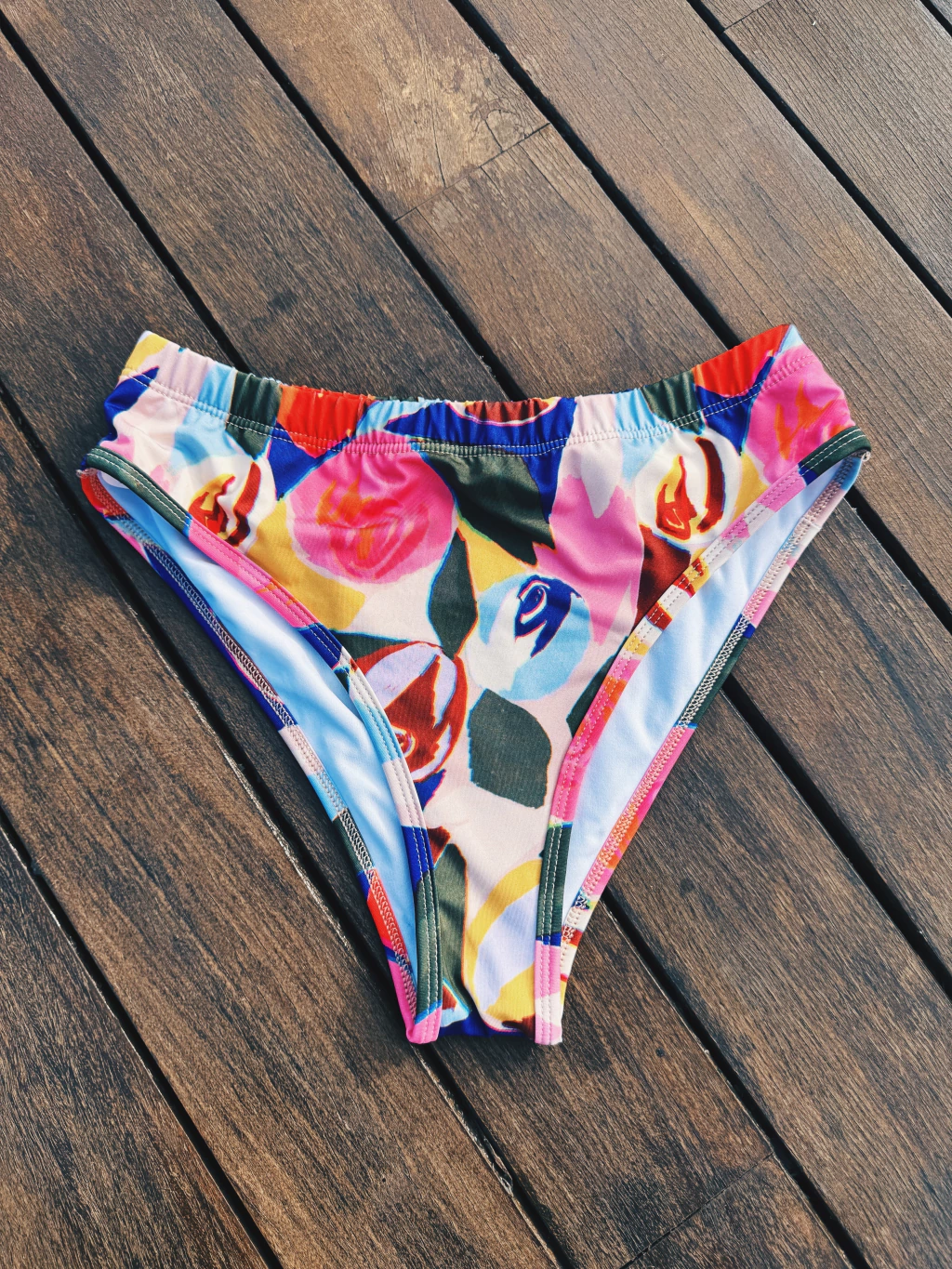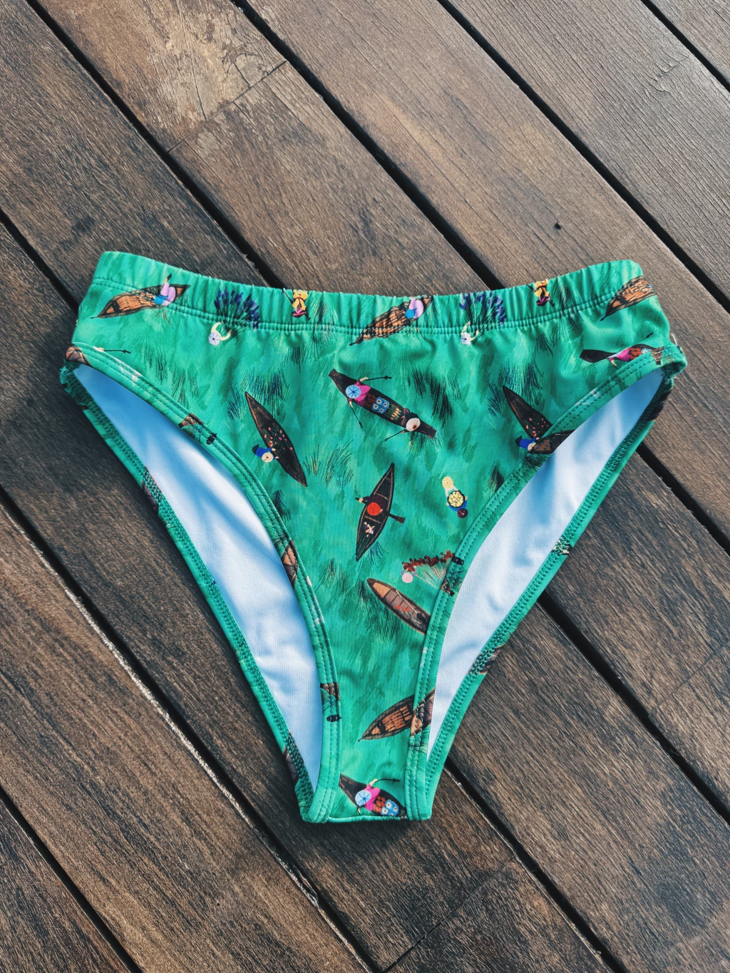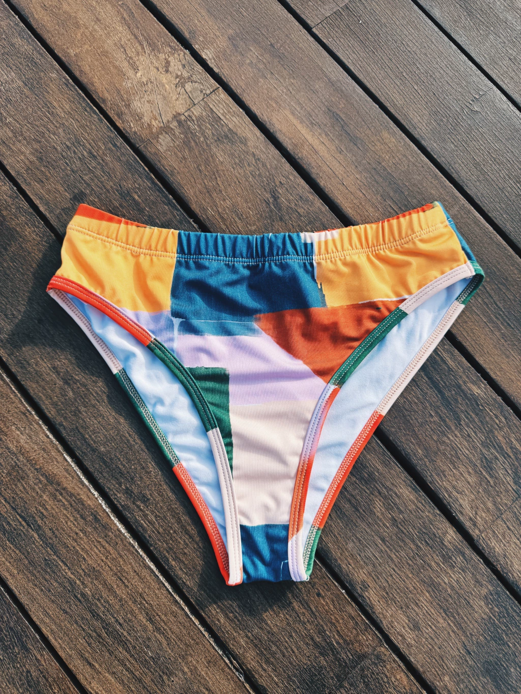 Vedetina tiro alto con cintura elastizada, confeccionada en microfibra con protección Uv+50, suave y liviana, con forro interno.