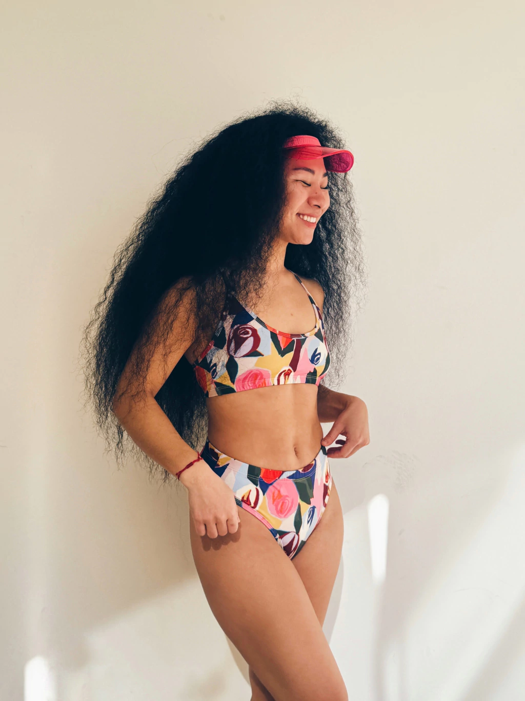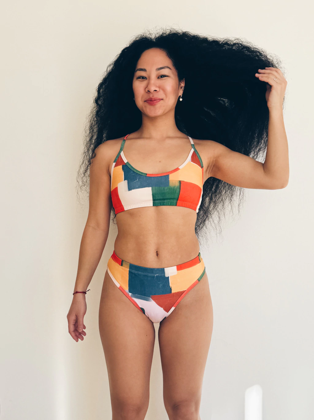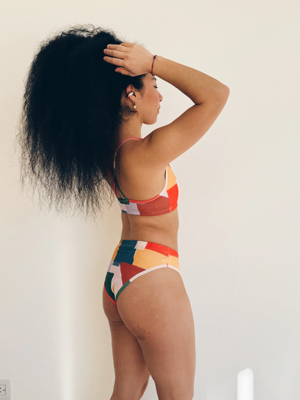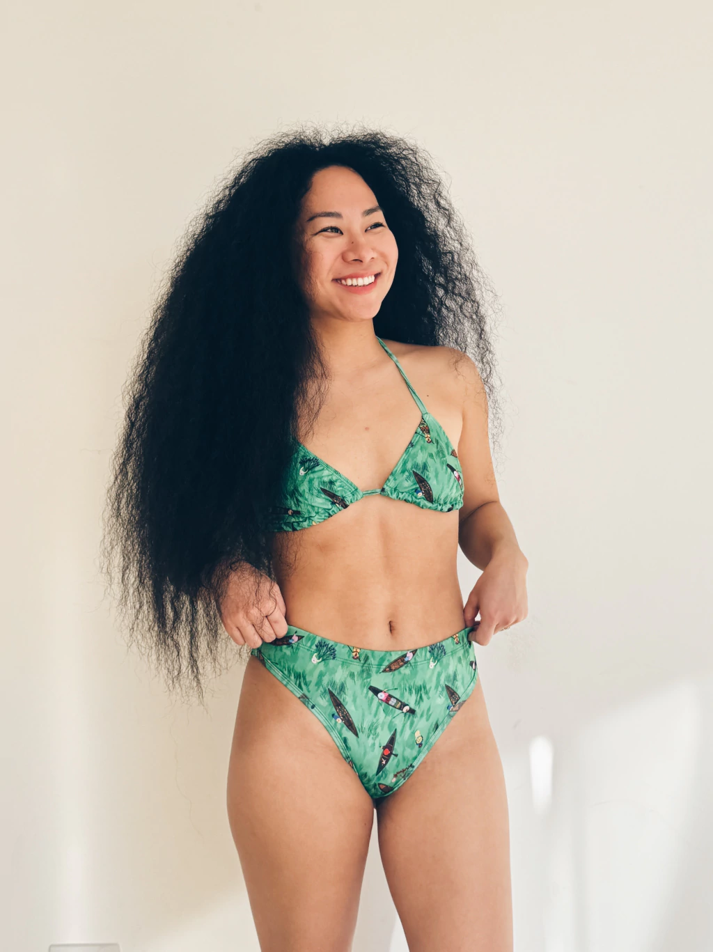 Vedetina tiro alto con cintura elastizada, confeccionada en microfibra con protección Uv+50, suave y liviana, con forro interno.